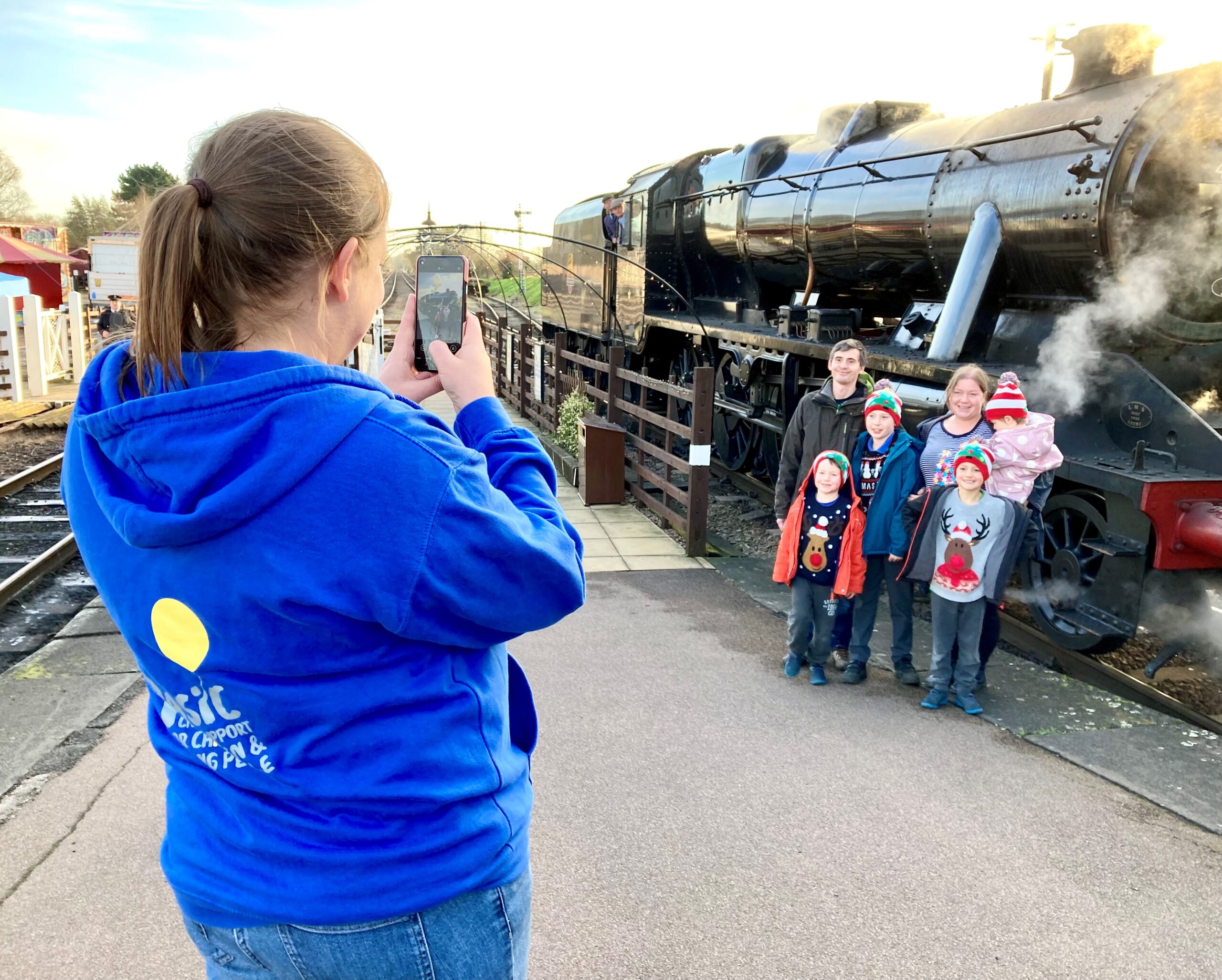 A family have fun on the PASIC Santa steam train